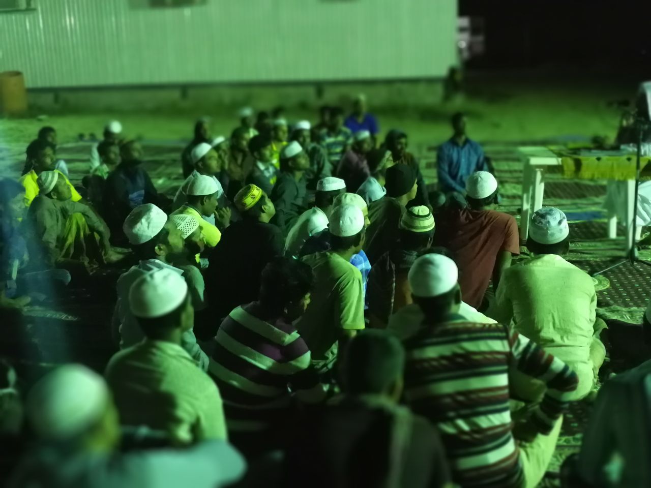 قسم الجاليات بالمكتب التعاوني بمحافظة فيفاء ينفذ اللقاء الحادي عشر للجالية البنقالية مساء هذا اليوم الأحد الموافق 15/4/1439هـ في سكن عمال البلدية بجهة حقو فيفاء بدٲ البرنامج بعد صلاة المغرب بمحاضره للداعية / نور العالم التابع للمكتب التعاوني بالملحا وكانت بعنوان آداب إسلاميه وأخلاق المسلم استمر فيها لوقت صلاة العشاء وبعد الصلاة جلس الجميع حلقات لتعليم القران الكريم إلى الساعة التاسعة ليلاً تم تعليمهم بعض السور القصار بعدها تم تحضير وجبة العشاء الذي أعده قسم الجاليات. لجميع الحضور هذاونسٲل الله أن يتقبل من جميع العاملين في دعوة الجاليات ويجزي خير الجزاء جميع الداعمين لهذه البرامج المباركة وصلى الله وسلم على نبينا محمد