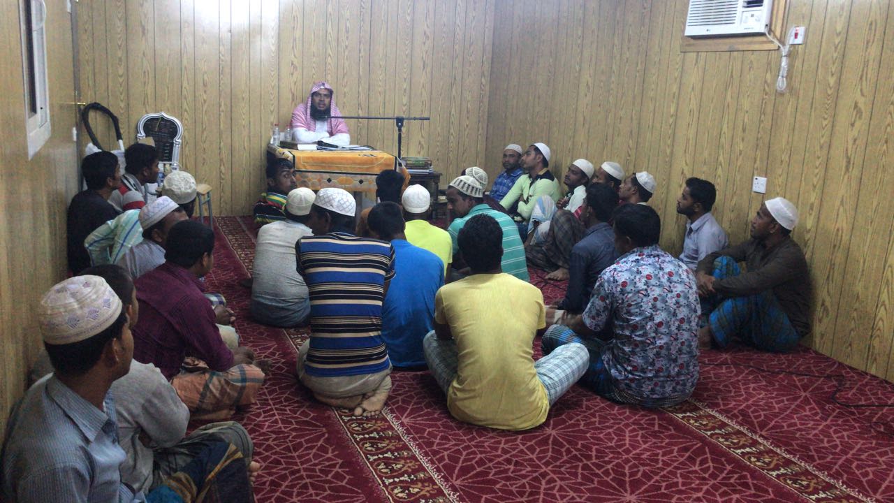قسم الجاليات بالمكتب التعاوني بمحافظة فيفاء ينفذ اللقاء الثاني والعشرون للجالية البنقالية مساء هذا اليوم الأحد الموافق 1/7/1439هـ في سكن عمال البلدية بجهة حقو فيفاء بدٲ البرنامج بعد صلاة المغرب بتعليم الحضور صيغة التسبيح في الركوع والسجود إلى قبيل أذان العشاء وبعد صلاة العشاء ثم بدٲ الداعية / نور العالم التابع للمكتب التعاوني بالملحا بإلقاء الدرس الذي كان بعنوان (مراتب الدين) استمر في الدرس إلى الساعة التاسعة مساءً ثم بعدها تم تحضير وجبة العشاء الذي أعده قسم الجاليات لجميع الحضور هذاونسٲل الله أن يتقبل من جميع العاملين في دعوة الجاليات ويجزي خير الجزاء جميع الداعمين لهذه البرامج المباركة وصلى الله وسلم على نبينا محمد