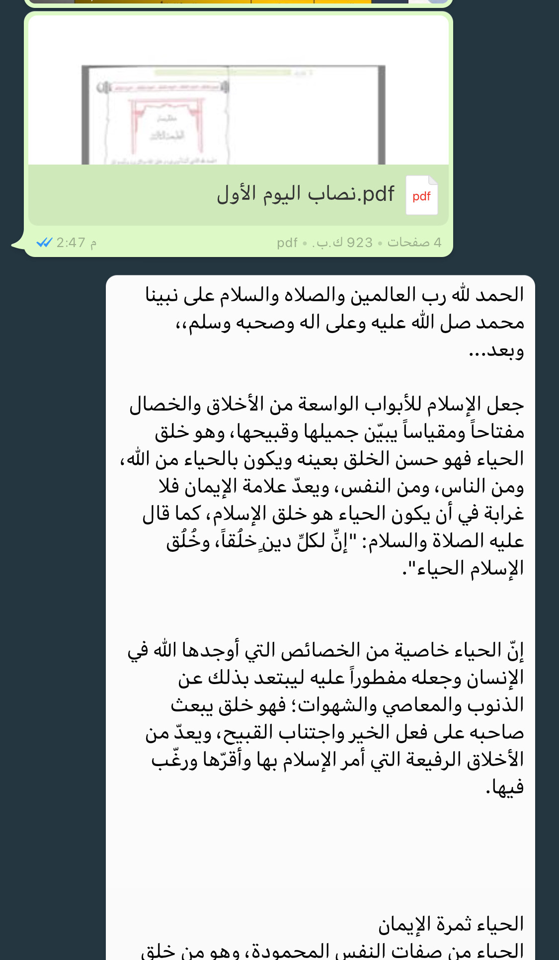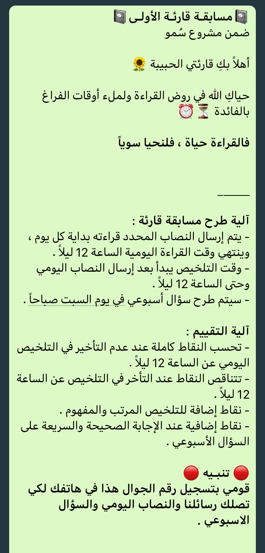 2. قراءة النصاب المرسل كل يوم وهو 15 صفحة .