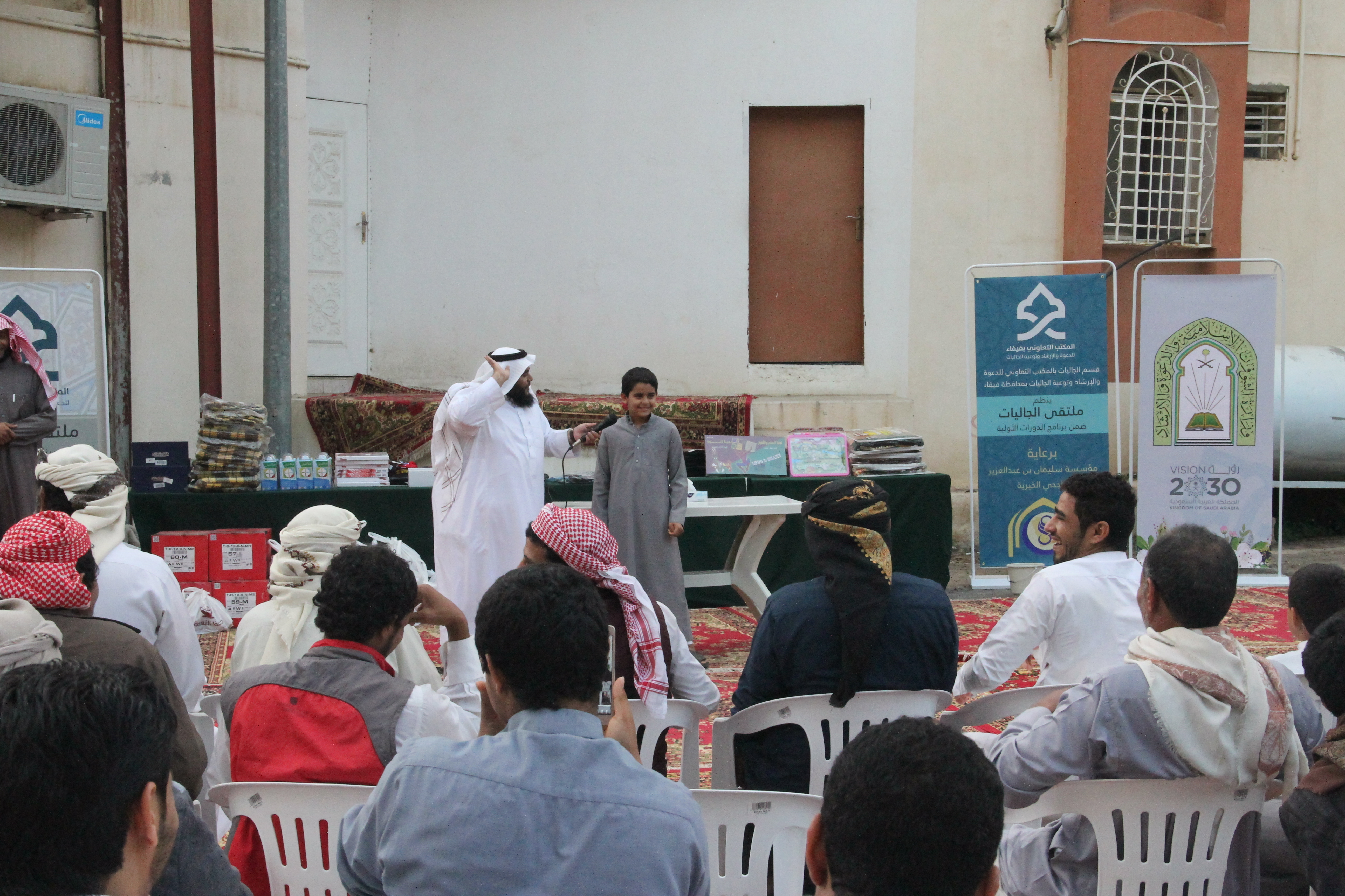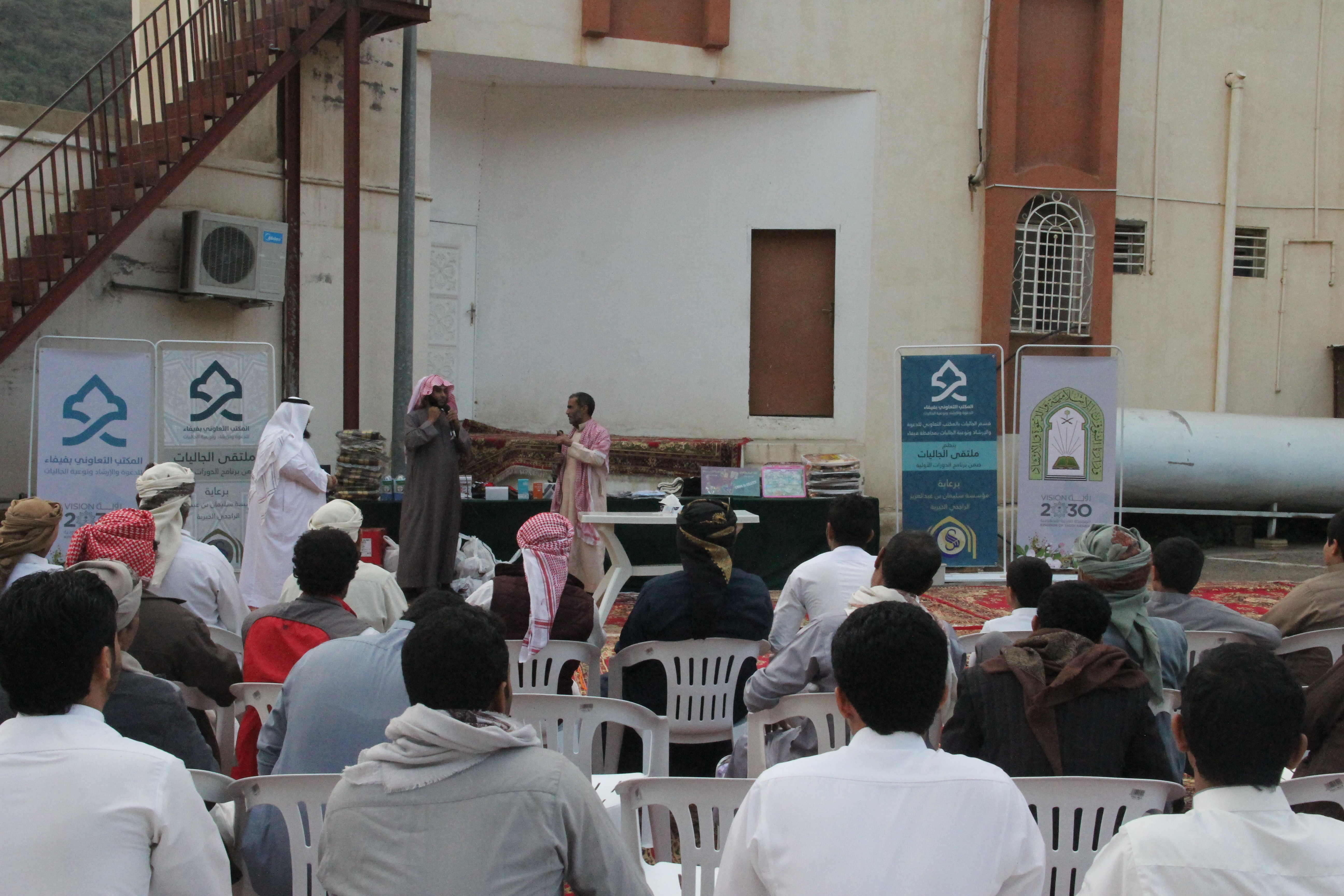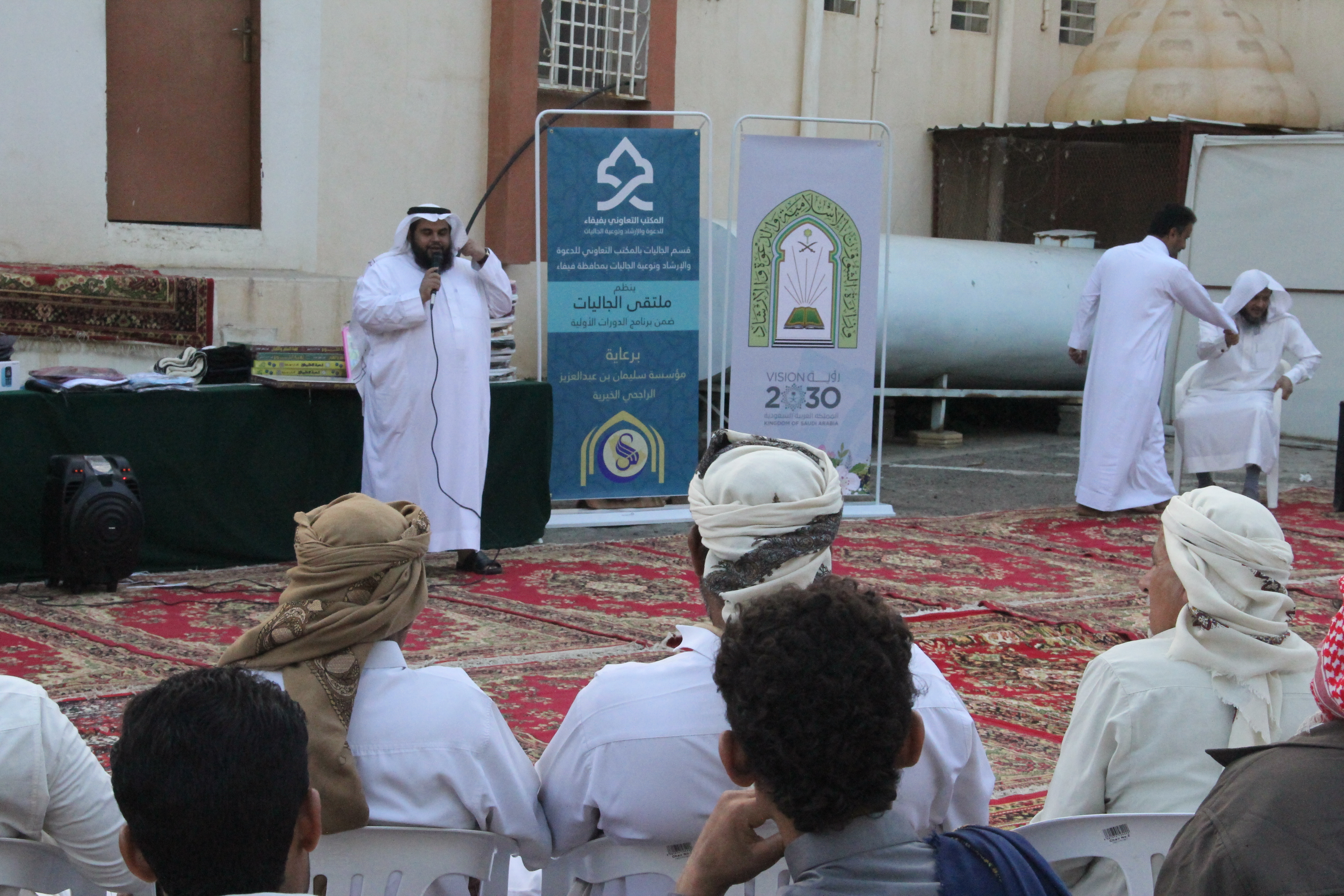 نفذ قسم الجاليات بالمكتب التعاوني للدعوة والإرشاد وتوعية الجاليات بمحافظة فيفاء برنامج ملتقى الجالية اليمنية يوم الجمعة الموافق 29/03/1440هـ بصالة المكتب بحي المزرعة من بعد صلاة العصر إلى الساعة التاسعة مساءً تخلل البرنامج ألعاب ترفيهية – ومحاضرة بعد صلاة المغرب للشيخ / حسن بن سالم المالكي بعنوان الدروس المهمة لعامة الأئمة وبعد صلاة العشاء اختتم المكتب البرنامج بالمسابقات والجوائز كما يشكر قسم الجاليات كل من قام بإنجاح هذا البرنامج فنسأل الله تبارك وتعالى أن يجزيهم خير الجزاء وأن يبارك في أموالهم وأولادهم كما يشكر المكتب الجهة الداعمة لهذا المشروع مؤسسة سليمان الراجحي الخيرية وشكر لقسم الجاليات بالمتب على ما يبذلونه من جهود مباركة