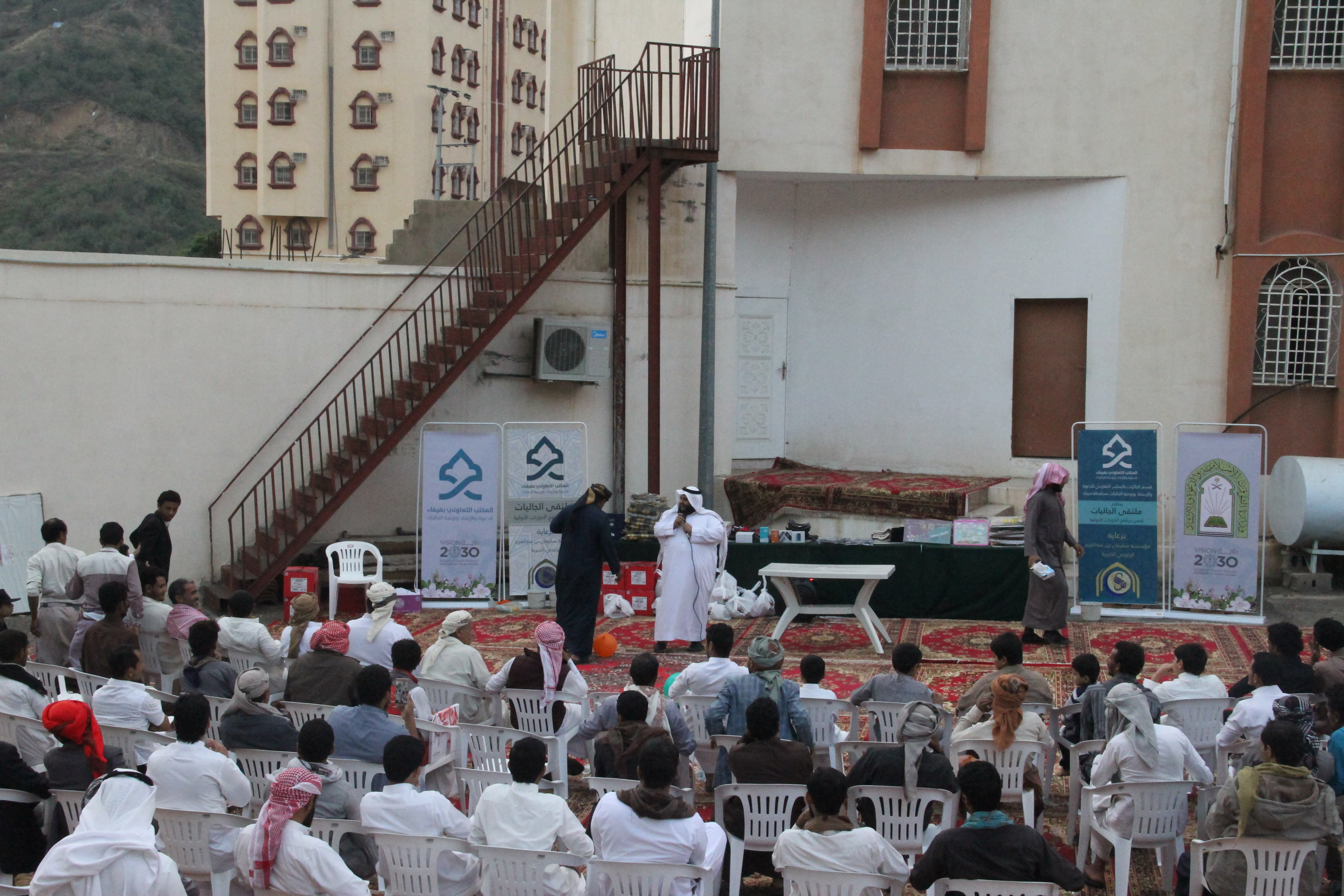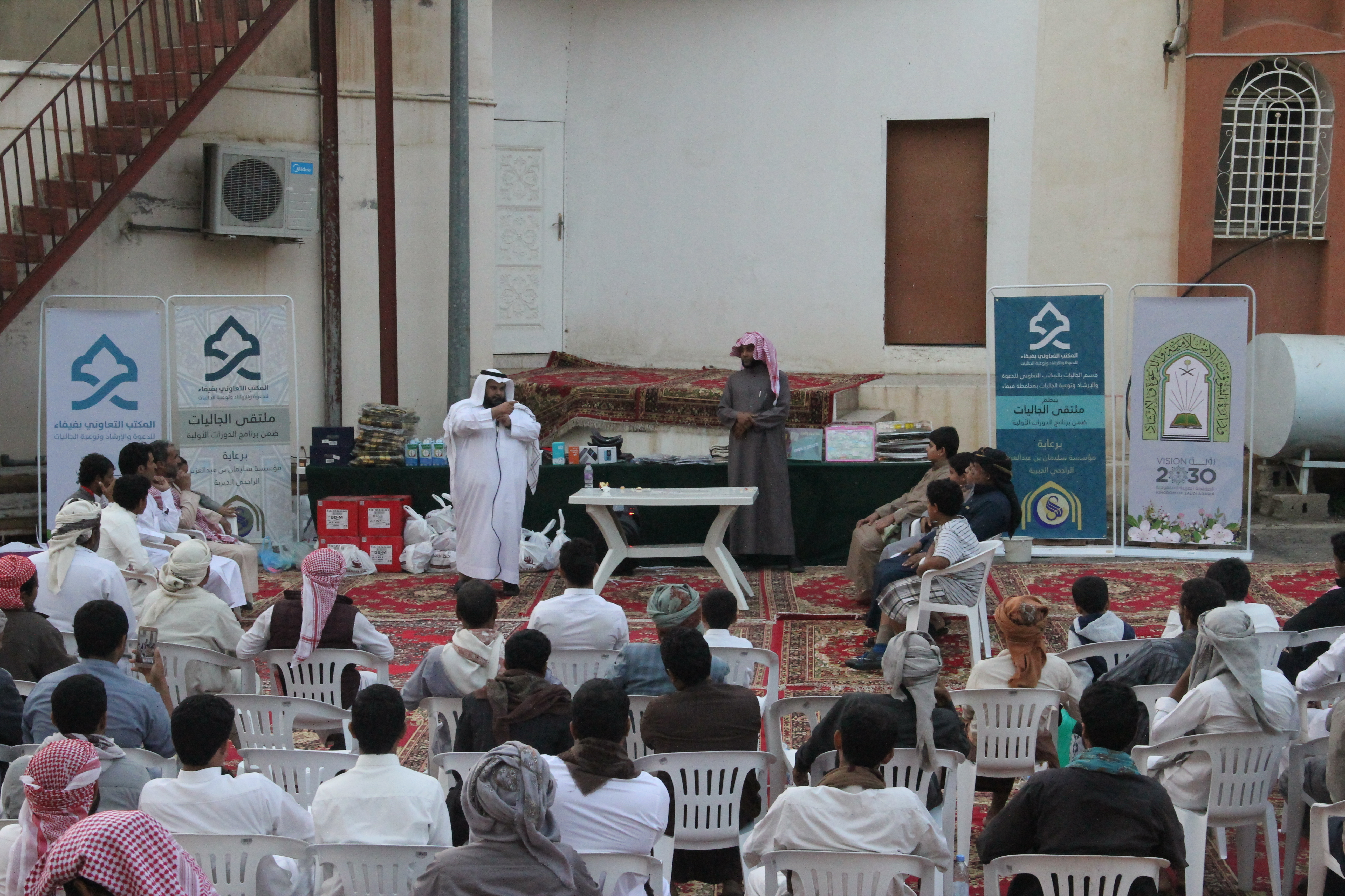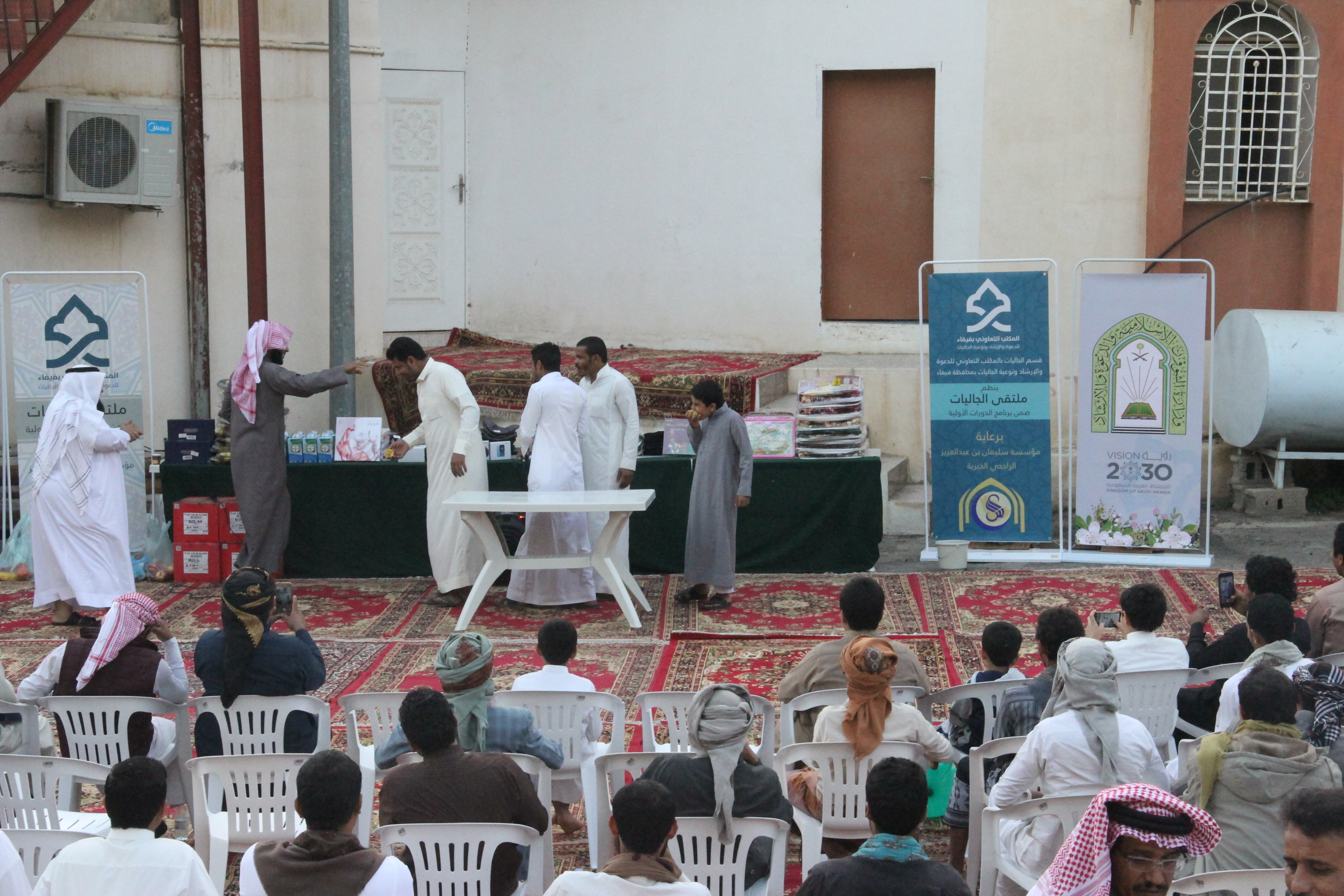 نفذ قسم الجاليات بالمكتب التعاوني للدعوة والإرشاد وتوعية الجاليات بمحافظة فيفاء برنامج ملتقى الجالية اليمنية يوم الجمعة الموافق 29/03/1440هـ بصالة المكتب بحي المزرعة من بعد صلاة العصر إلى الساعة التاسعة مساءً تخلل البرنامج ألعاب ترفيهية – ومحاضرة بعد صلاة المغرب للشيخ / حسن بن سالم المالكي بعنوان الدروس المهمة لعامة الأئمة وبعد صلاة العشاء اختتم المكتب البرنامج بالمسابقات والجوائز كما يشكر قسم الجاليات كل من قام بإنجاح هذا البرنامج فنسأل الله تبارك وتعالى أن يجزيهم خير الجزاء وأن يبارك في أموالهم وأولادهم كما يشكر المكتب الجهة الداعمة لهذا المشروع مؤسسة سليمان الراجحي الخيرية وشكر لقسم الجاليات بالمتب على ما يبذلونه من جهود مباركة