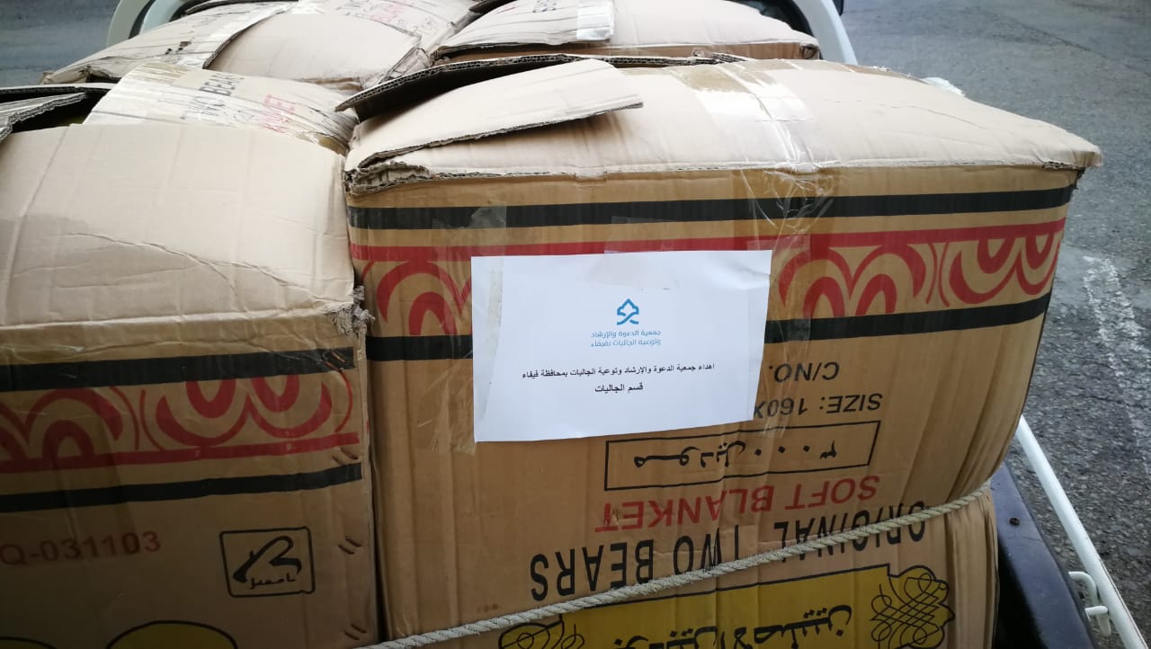 في هذه الأيام الشتوية شديدة البرودة قام قسم الجاليات بجمعية الدعوة والإرشاد بفيفاء بتوزيع البطانيات على الجاليات المتواجدة في المحافظة وذلك لمن ليس لهم مساكن إلا تحت الإشجار وفي البيت المهجورة وقد أبدوا سرورهم ودعواتهم لكل من ساهم بالدعم المالي والعملي في هذا المشروع المبارك