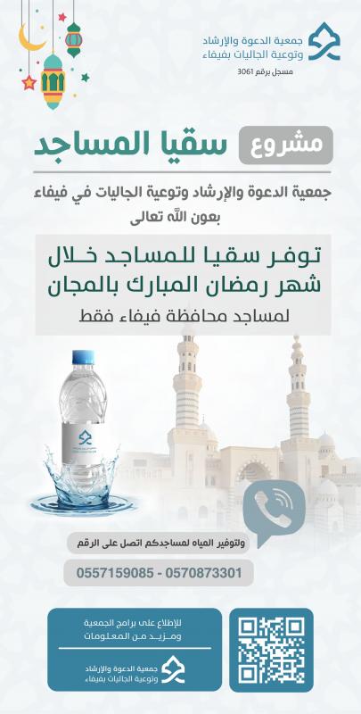 توفر سقيا للمساجد خلال شهر رمضان المبارك بالمجان
