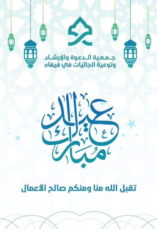 جمعية الدعوة والإرشاد وتوعية الجاليات بمحافظة فيفاء تهنئكم بحلول عيد الفطر المبارك تقبل الله منا ومنكم صالح الأعمال