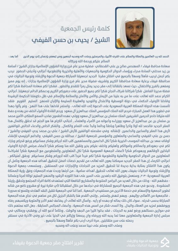 تقرير افتتاح مقر جمعية الدعوة بفيفاء
