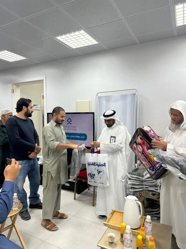 دشن محافظ محافظة فيفاء الأستاذ / محمد بن حاسر حكمي وبحضور رئيس جمعية الدعوة بفيفاء الشيخ / يحيى بن حسن الفيفي ومدير قسم الجاليات الأستاذ / يحيى بن إبراهيم الفيفي الحقيبة الشتوية السنوية لقسم الجاليات بجمعية الدعوة بفيفاء اليوم الاثنين الموافق : 13/5/1445هـ الذي يأتي دعماً من منصة إحسان الخيرية لعدد 1000 حقيبة مكونة من (بطانية + جاكيت + بلوفر + شال + قبعة + شراب + قفاز) .