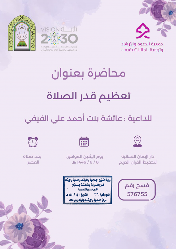 يسر جمعية الدعوة والإرشاد وتوعية الجاليات مُمثلاً باللجنة النسائية بالجمعية دعوتكن لحضور محاضرة بعنوان