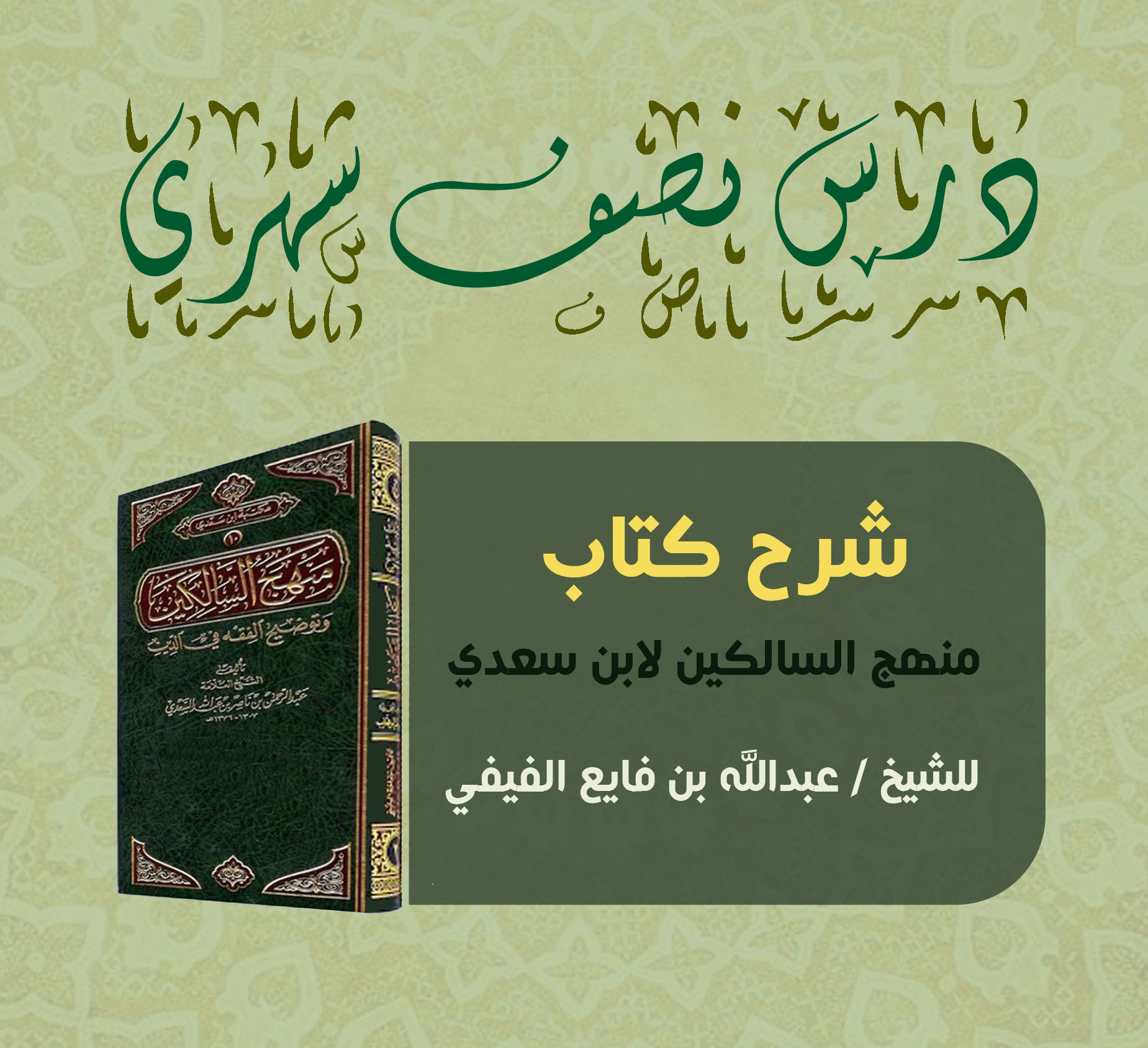 يسر جمعية الدعوة والإرشاد وتوعية الجاليات بمحافظة فيفاء دعوتكم لحضور الدرس النصف شهري في شرح كتاب منهج السالكين لابن سعدي للشيح / عبدالله بن فايع الفيفي وذلك بجامع الغمر بعد صلاة المغرب من يوم الأربعاء بواقع مرتين في الشهر