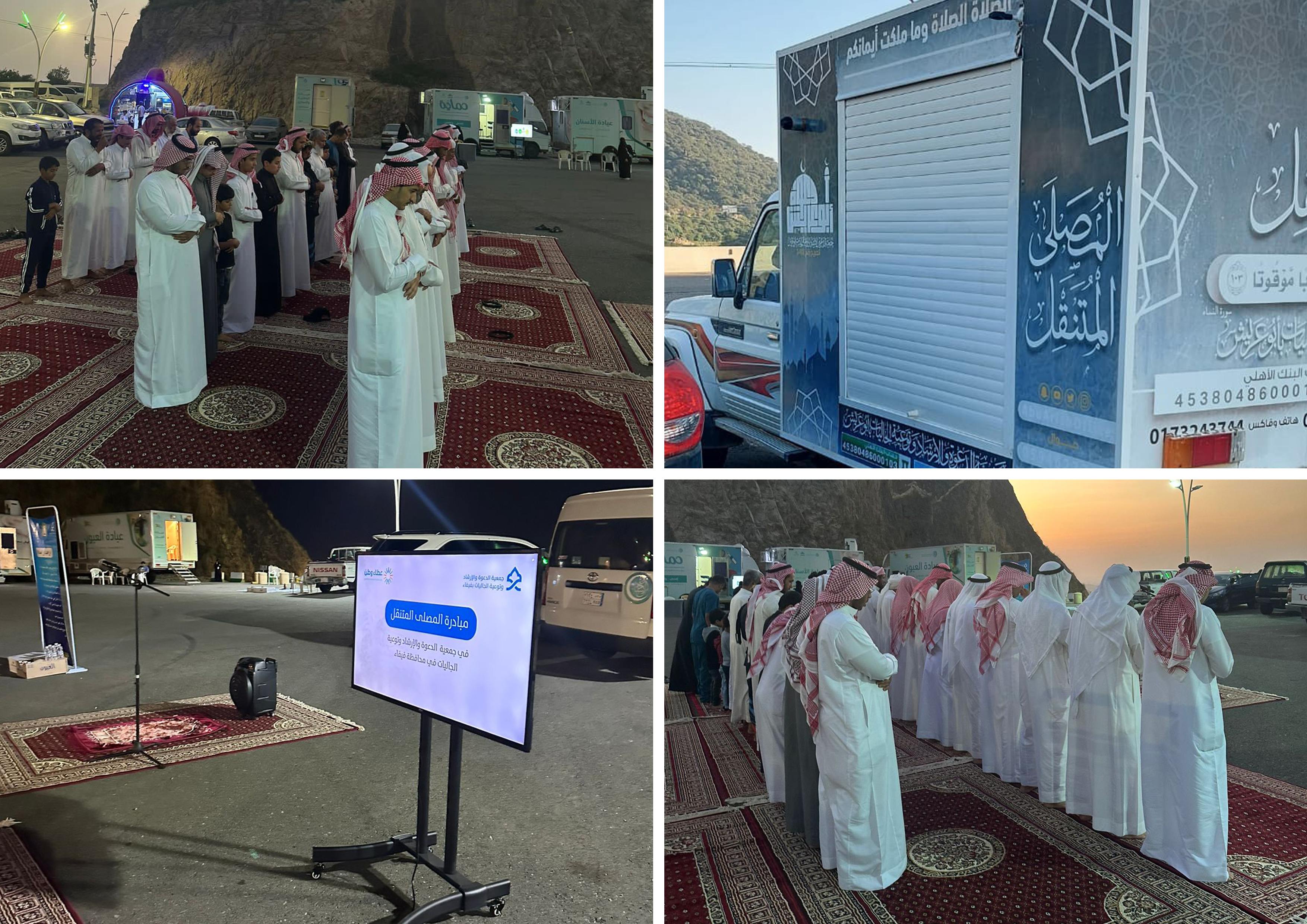 جمعية الدعوة والإرشاد وتوعية الجاليات في محافظة فيفاء تقيم فعالية المصلى المتنقل في منتزه النافورة بفيفاء بالتعاون مع جمعية الدعوة بابي عريش تزامنا مع العيادات المتنقلة